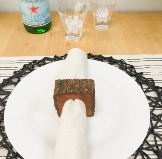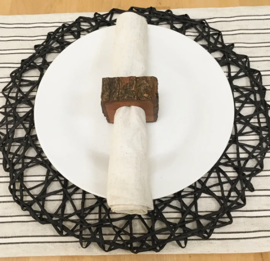 Babul Wood Bark Edge Square Napkin Ring, Set of 2