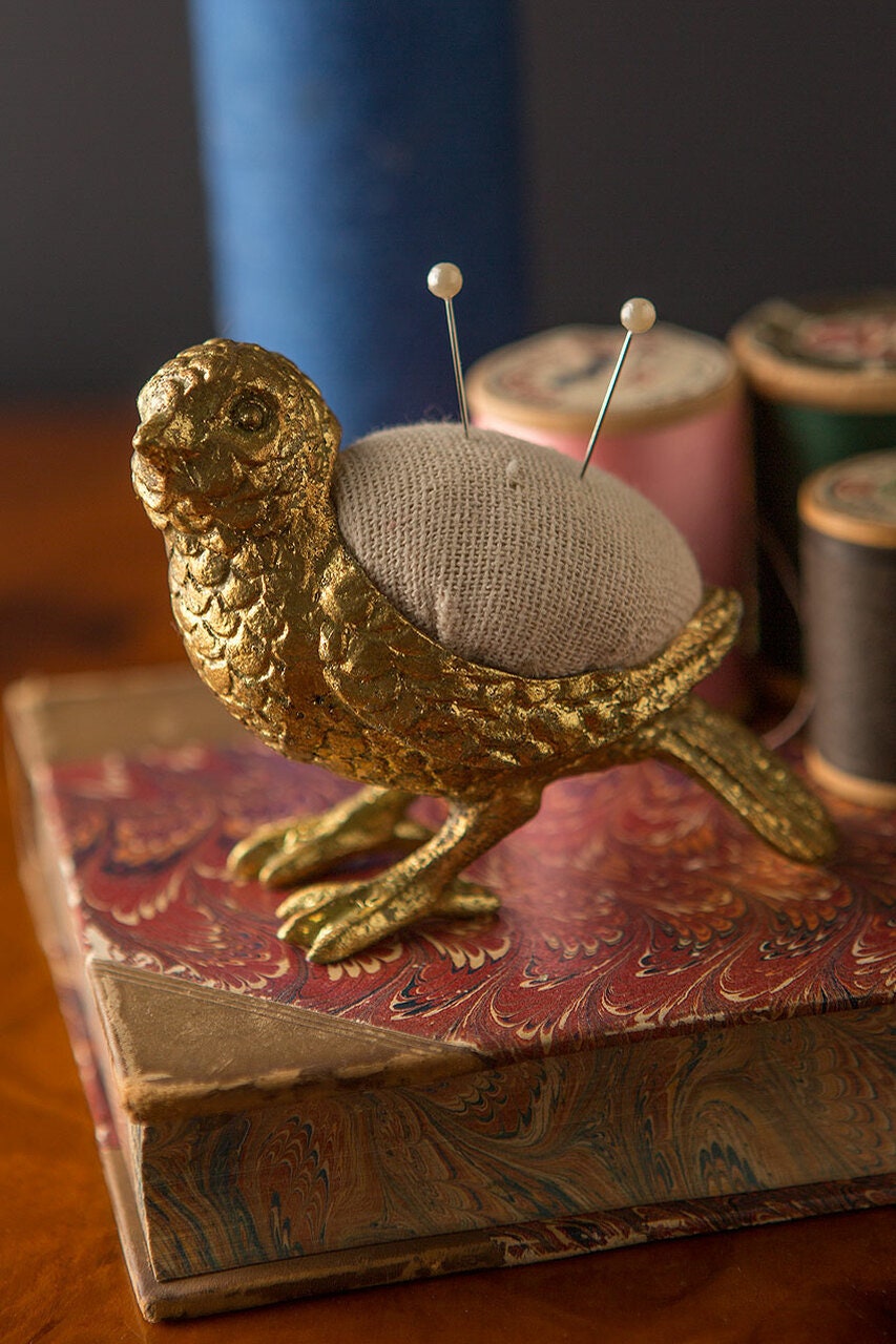 Its very pretty and cute bird. Perfect for that person that has everything. Vintage inspired, pewter, gold bird with room for multiple pins.