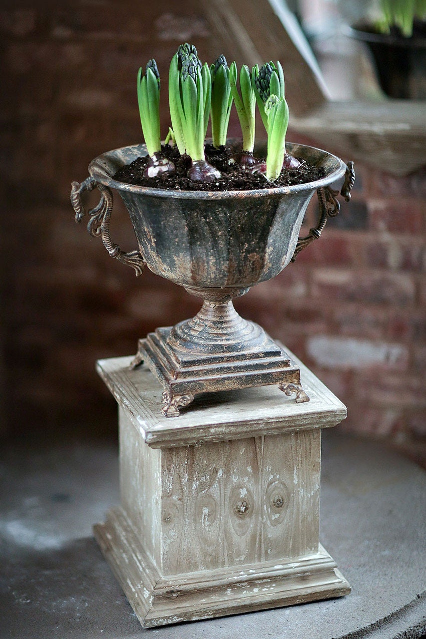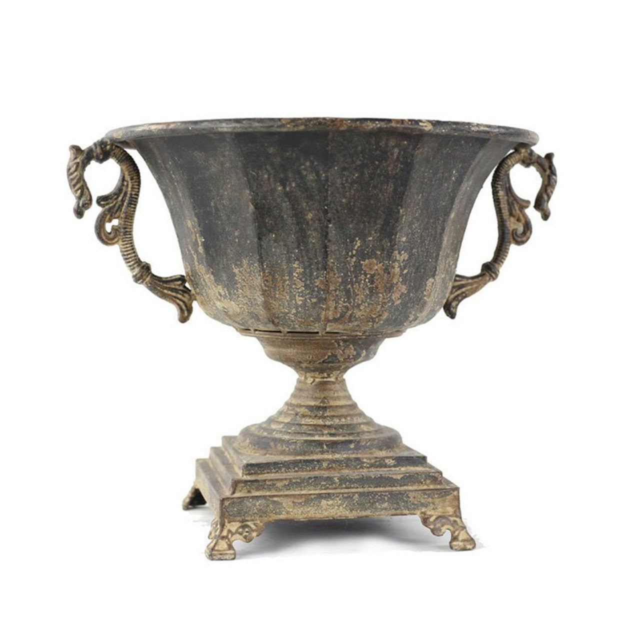 Distressed Black Metal Urn.
