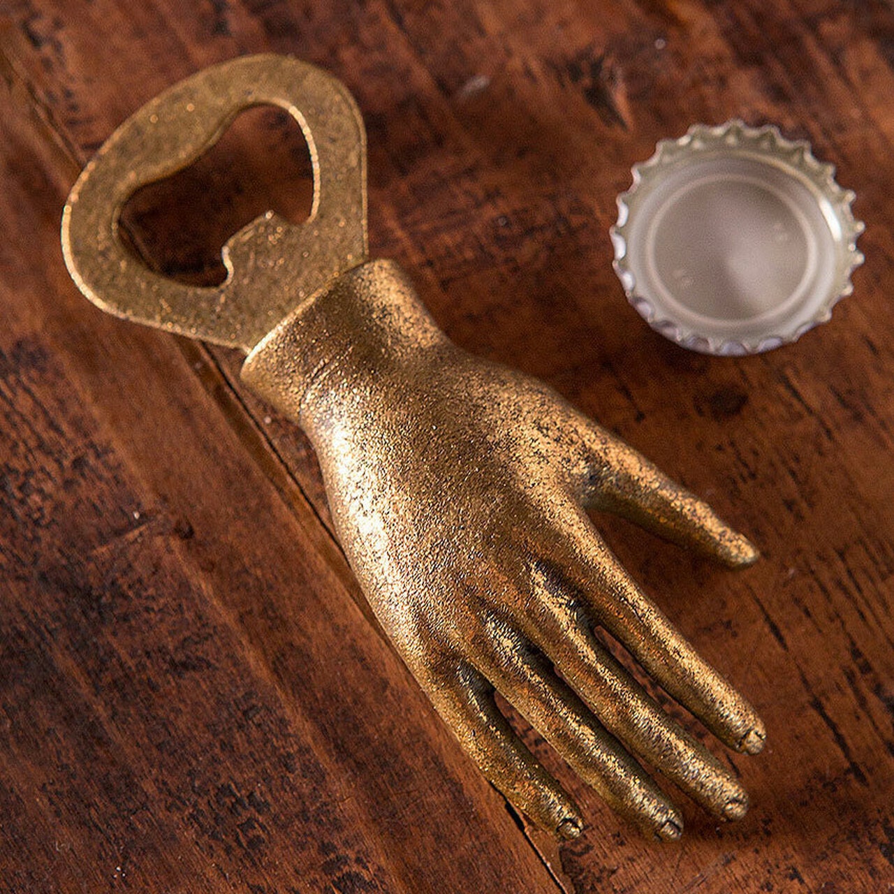 This vintage-inspired hand bottle opener features gold-leaf finishes and makes the perfect gift for anyone of your friend.