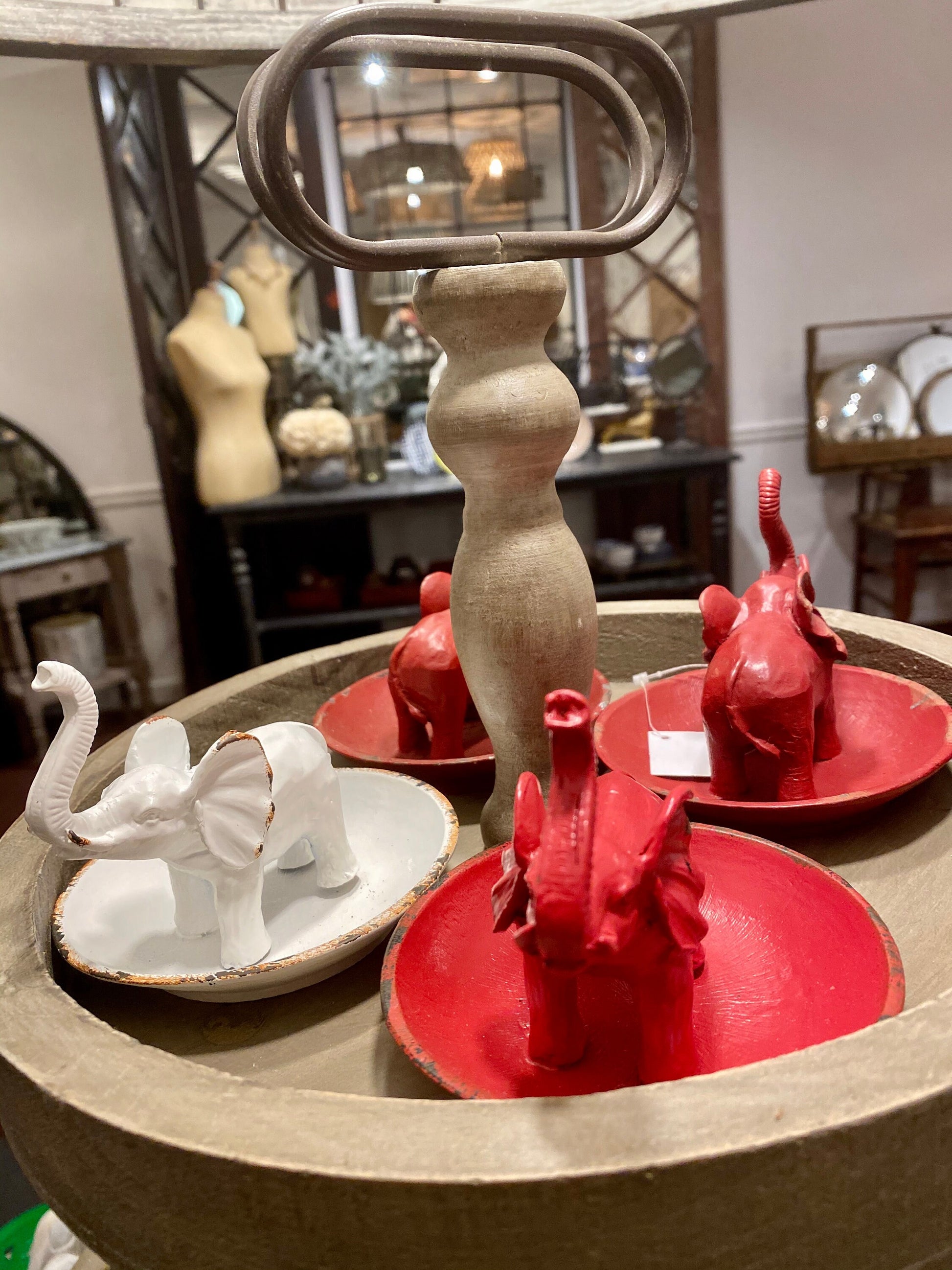 Heavy Red or White Color Elephant Ring/Jewelry/Coin Dish